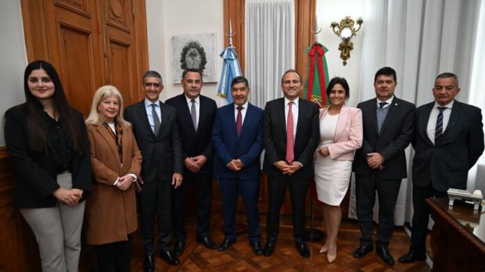 El vicegobernador Miguel Acevedo, a cargo del Poder Ejecutivo recibió en la mañana del martes al embajador de Portugal en Argentina, Gonçalo Teles Gomes. La visita del diplomático estuvo orientada a identificar áreas de cooperación en deporte, cultura, turismo, vitivinicultura, agua y saneamiento, innovación, tecnología, emprendimientos, cooperación académica y financiamiento internacional de la provincia.