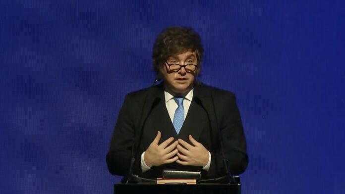 En su discurso, Milei reivindicó a Juan Bautista Alberdi y -al igual que ayer en el Palacio Libertad- se basó en la obra del teórico Adam Smith y en la idea de “la moral como política de Estado”.